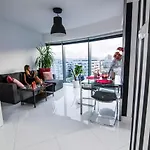 В апартаментах есть терраса, а из окон открывается вид на город. В ванной апартаментов предусмотрены душ.